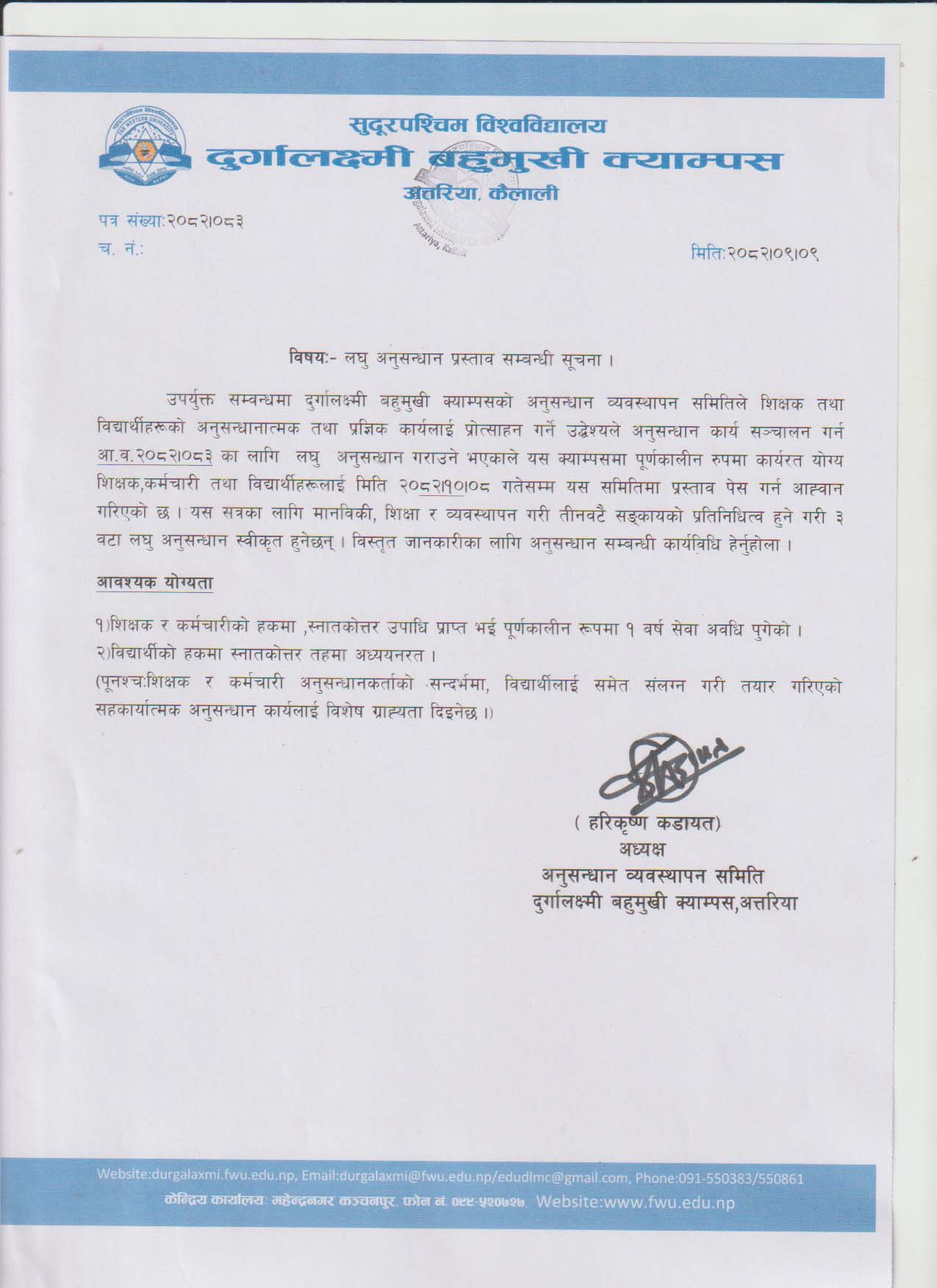 दुर्गालक्ष्मी बहुमुखी क्याम्पसको भर्ना सम्बन्धी सूचना २०८१